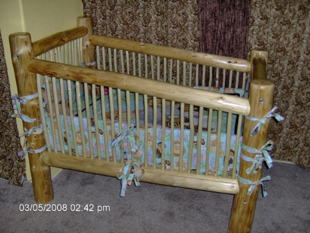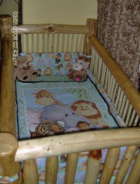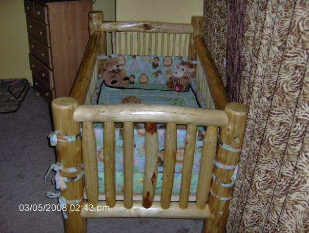 | The perfect companion to the Twin Diamonds Queen or King bed frames! A spruce crib, with willow spindles. The foot board is all spruce, with a single diamond willow post in the center. Fits a standard size crib, with bumpers (not included). As shown, without bedding: $ 1250.00 |