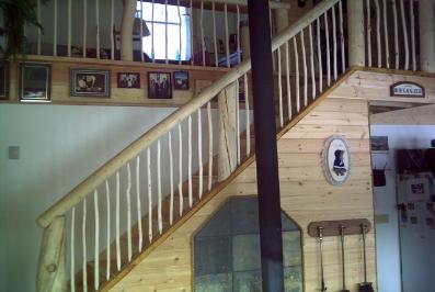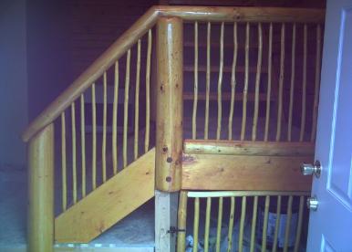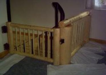 | For all log railings, fresh local wood is used. Posts and rails are fashioned by hand from Spruce and Pine, and all balusters are hand-cut and finished from Alaskan Willow. |