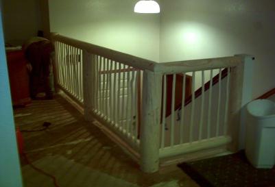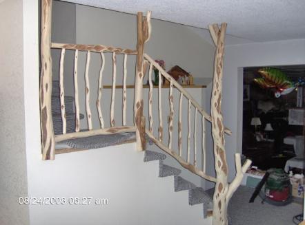 | A variation on a theme- an interior stairway railing made entirely of diamond willow, with the main feature being the main landing post, which has almost 100 small to medium diamonds in itself! The rail is shown here unfinished- it will be coated with a clear gloss varnish. |