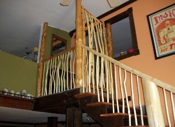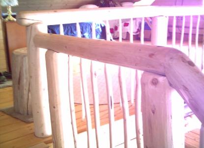 | For all log railings, fresh local wood is used. Posts and rails are fashioned by hand from Spruce and Pine, and all balusters are hand-cut and finished from Alaskan Willow. |